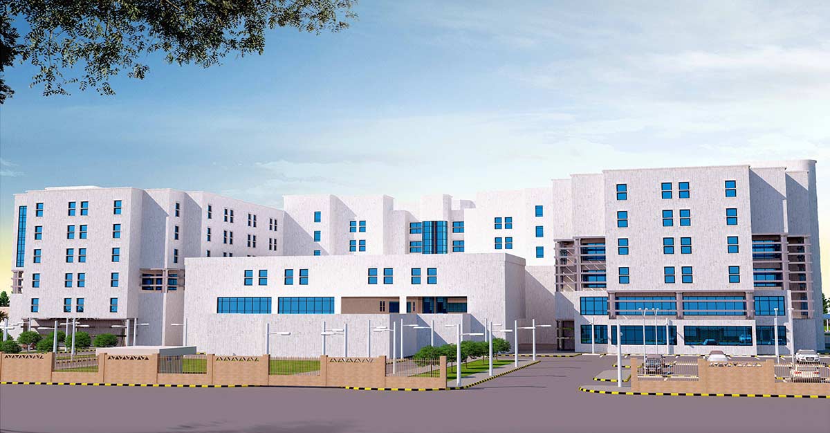 The hospital comprises nine (9) buildings with a total built-up area of 82,000m2 and a maximum height of 40m on total plot of 87,000m2. The hospital is equipped with state of the art healthcare technology with a capacity of 400 beds.