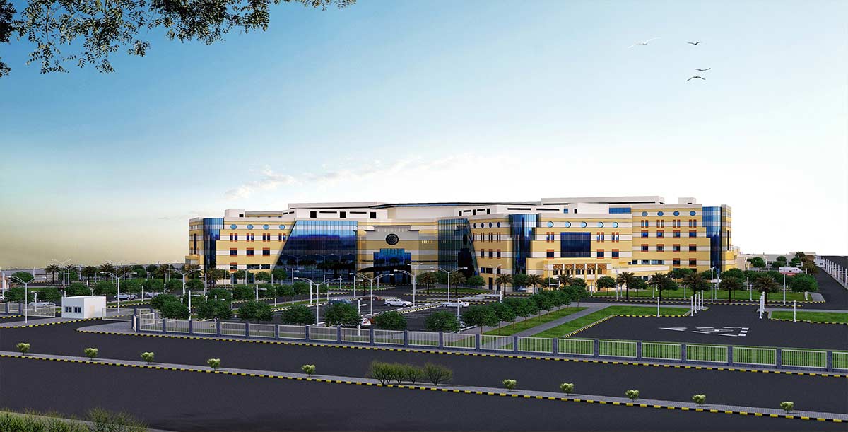 The hospital is located in Jizan City situated in the southwest corner of Saudi Arabia and on the northern border of Yemen on land plot of about 366,944m2. The hospital comprises eleven buildings with a maximum height of 38m, total built-up area of 134,014m2 and a capacity of 500-beds.