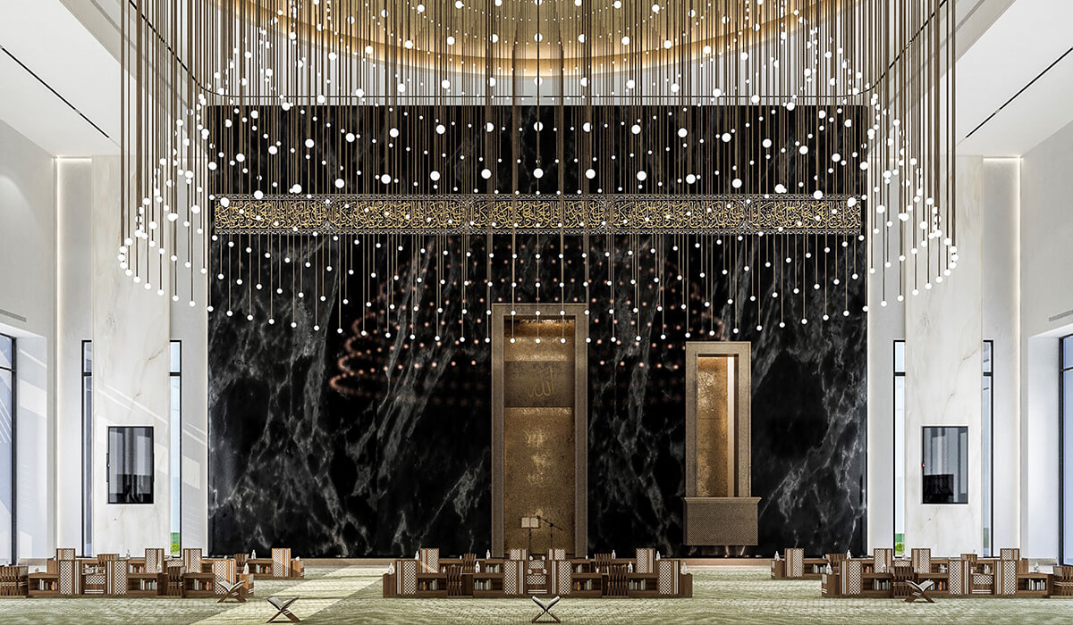 The mosque belongs to a prestigious client and serves as private facility to the mansion.