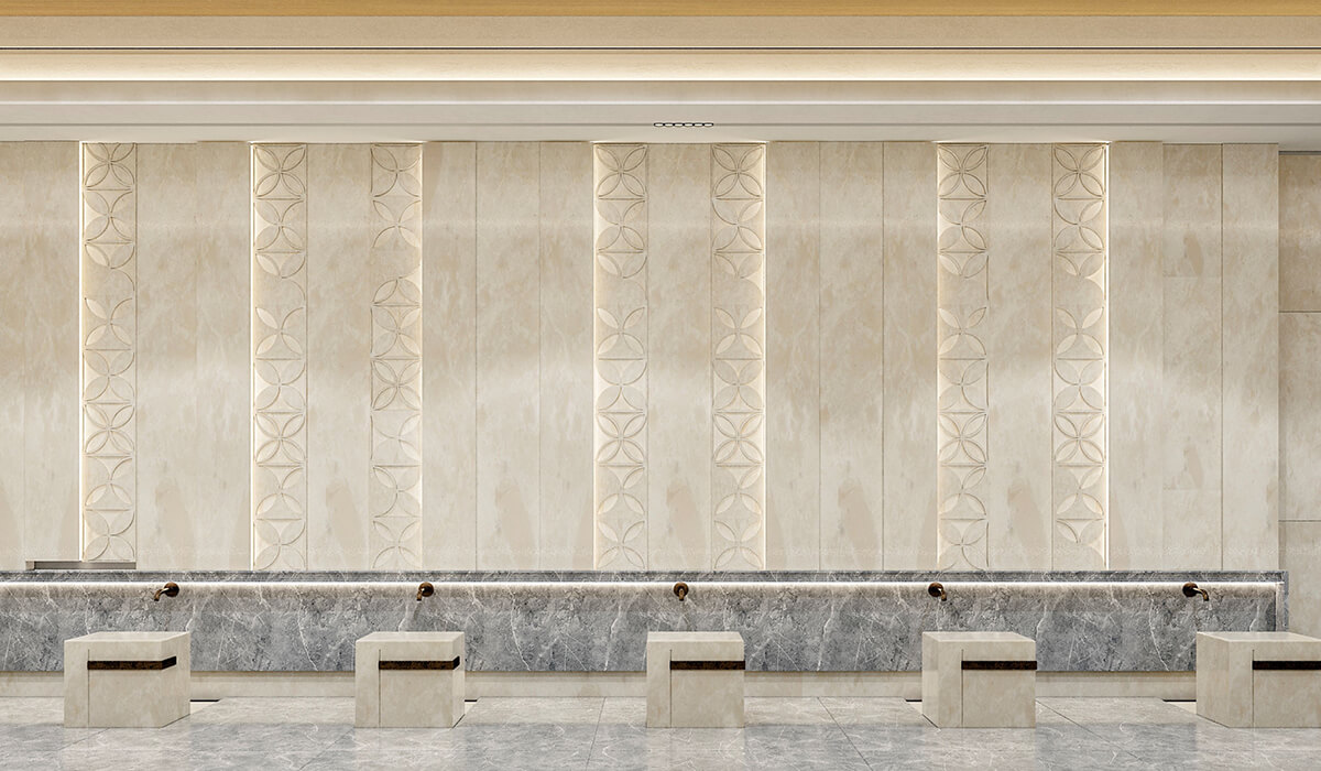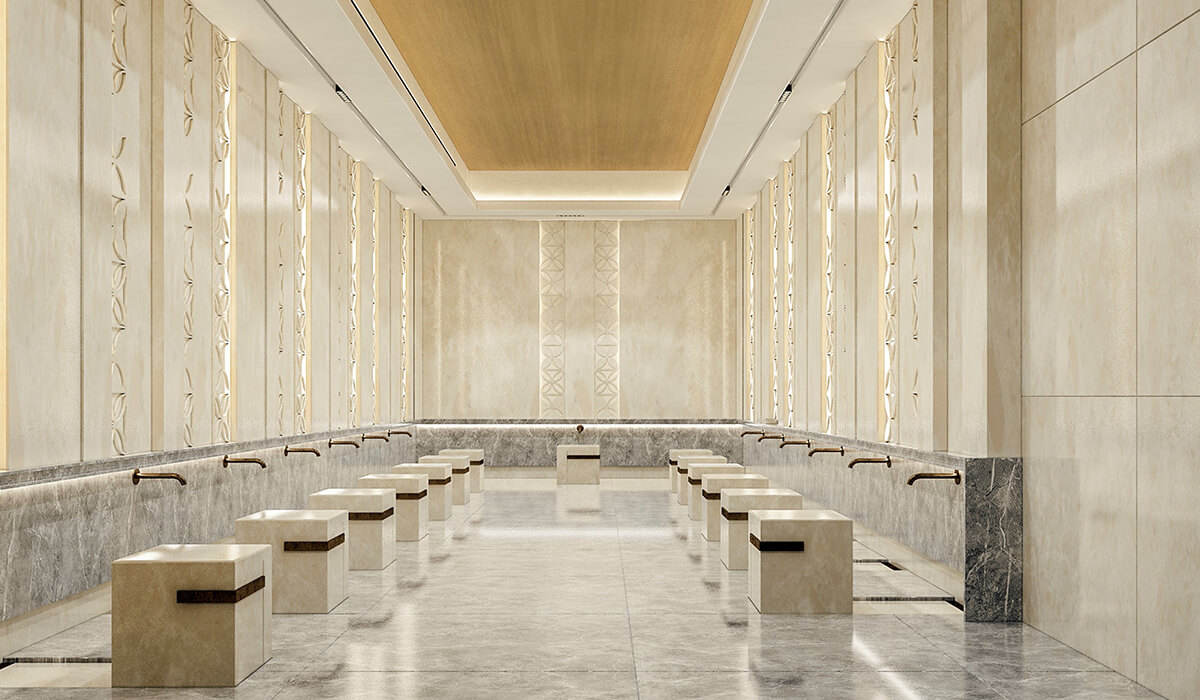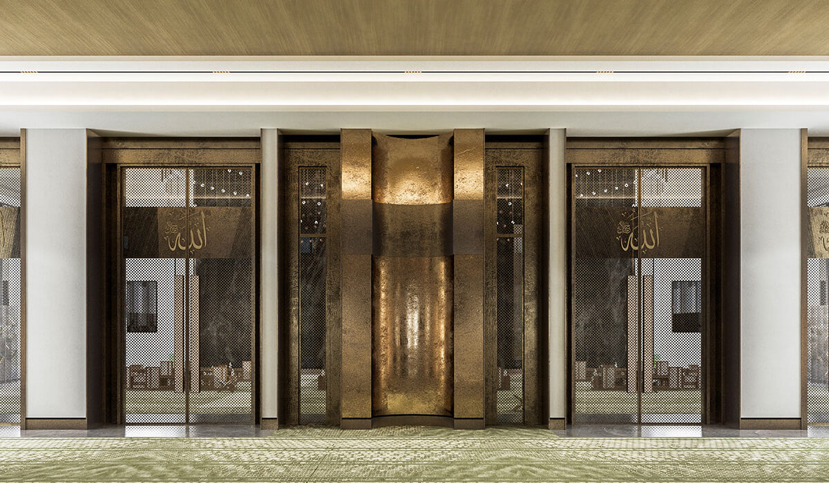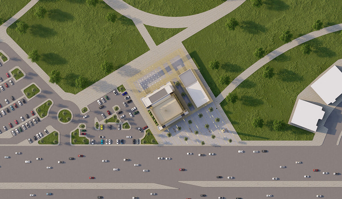 The mosque comprises 3 entrances leading to the men’s prayer room and a separated entrance for the ladies leading to the lady’s prayer room, the mosques includes two (2) ablution areas and a service building.
